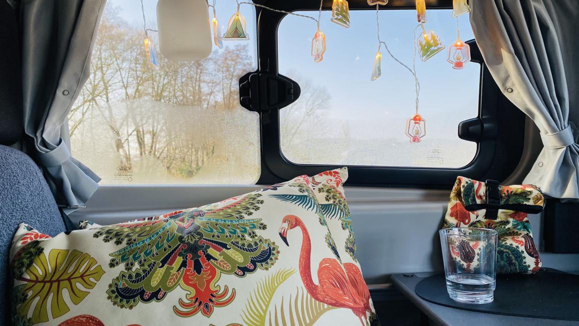 Von Anfang an hat mir das Muster »Oriental Flamingo« von DriveDressy gut gefallen. Trotzdem haben wir uns für unspektakuläre graue Sitzbezüge von Ukatex entschieden. Ausschlaggebend war, dass Ukatex welche aus saugstarkem Frottee im Programm hat – und es diese auch für unsere Aguti-Sitze gibt. Umso mehr freut es mich, dass DriveDressy seit Kurzem Camper-Magnet-Taschen und Kissenbezüge mit meinem Wunschmotiv anbietet. Endlich konnte der Flamingo auch bei uns landen!