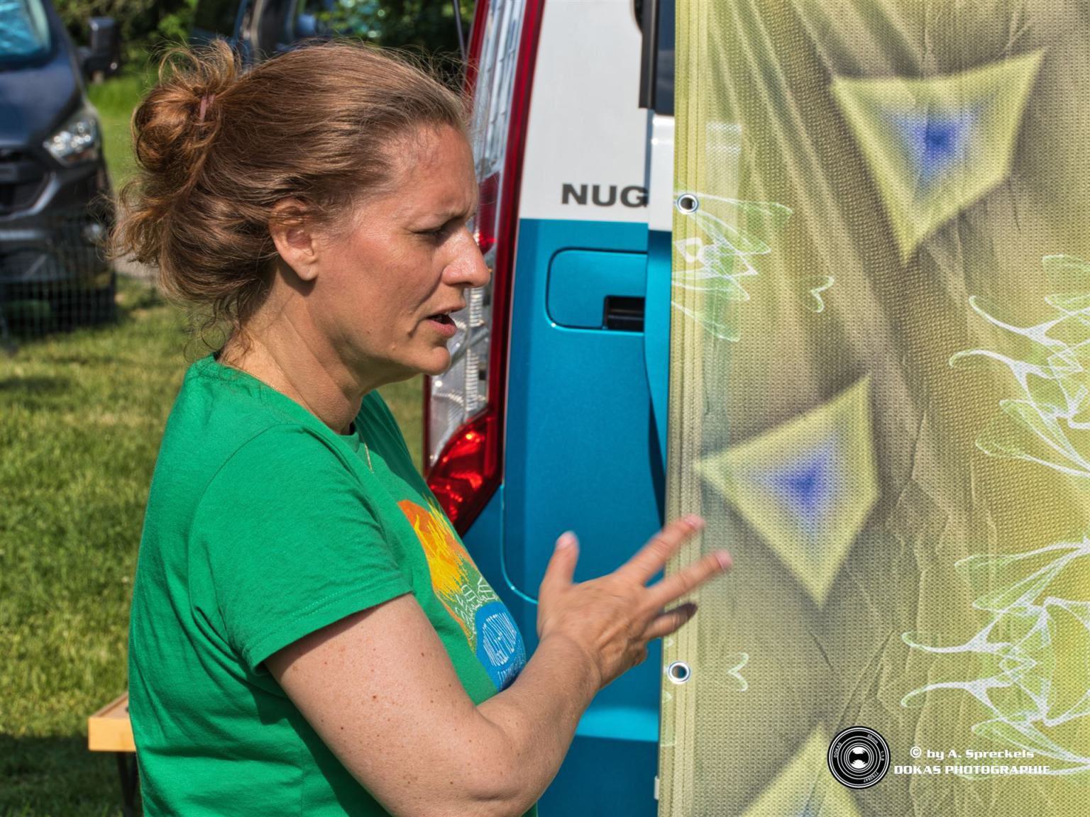 »VANDALA – Markisensegel« standen am Mittwochnachmittag als Programmpunkt auf dem Festival-Planer – und schon bald tummelte sich der eine oder die andere Interessierte am autormobil. Ich bin der Meinung: Ein VANDALA muss man selbst erleben. Deshalb haben wir unsere mitgebrachten Markisensegel kurzerhand verliehen. Die konnten dann auch schon bald unter Beweis stellen, was sie so draufhaben. Denn auf Sonnenschein folgte Regen folgte Hagel folgte Sonnenschein. (Ehrlich, das Wetter hatten wir so nicht bestellt.)