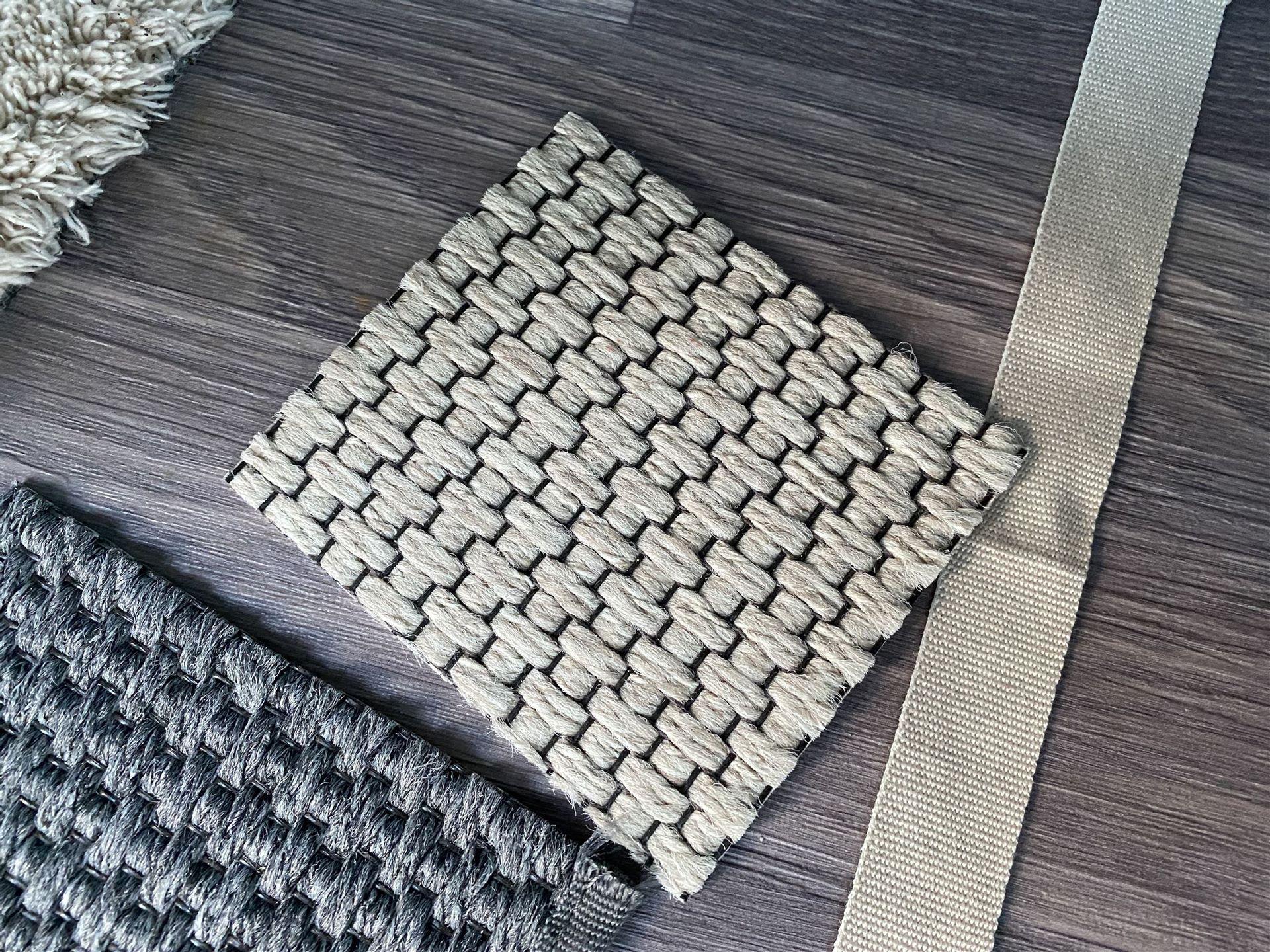 Der Hersteller Bentzon Carpets schreibt über die infrage kommende Auslegware: »Die Outdoor-Kollektion von Elba besteht aus sehr strapazierfähigem, wetterbeständigem Polyamid mit Schaumstoffrücken für den Innen- und Außenbereich.