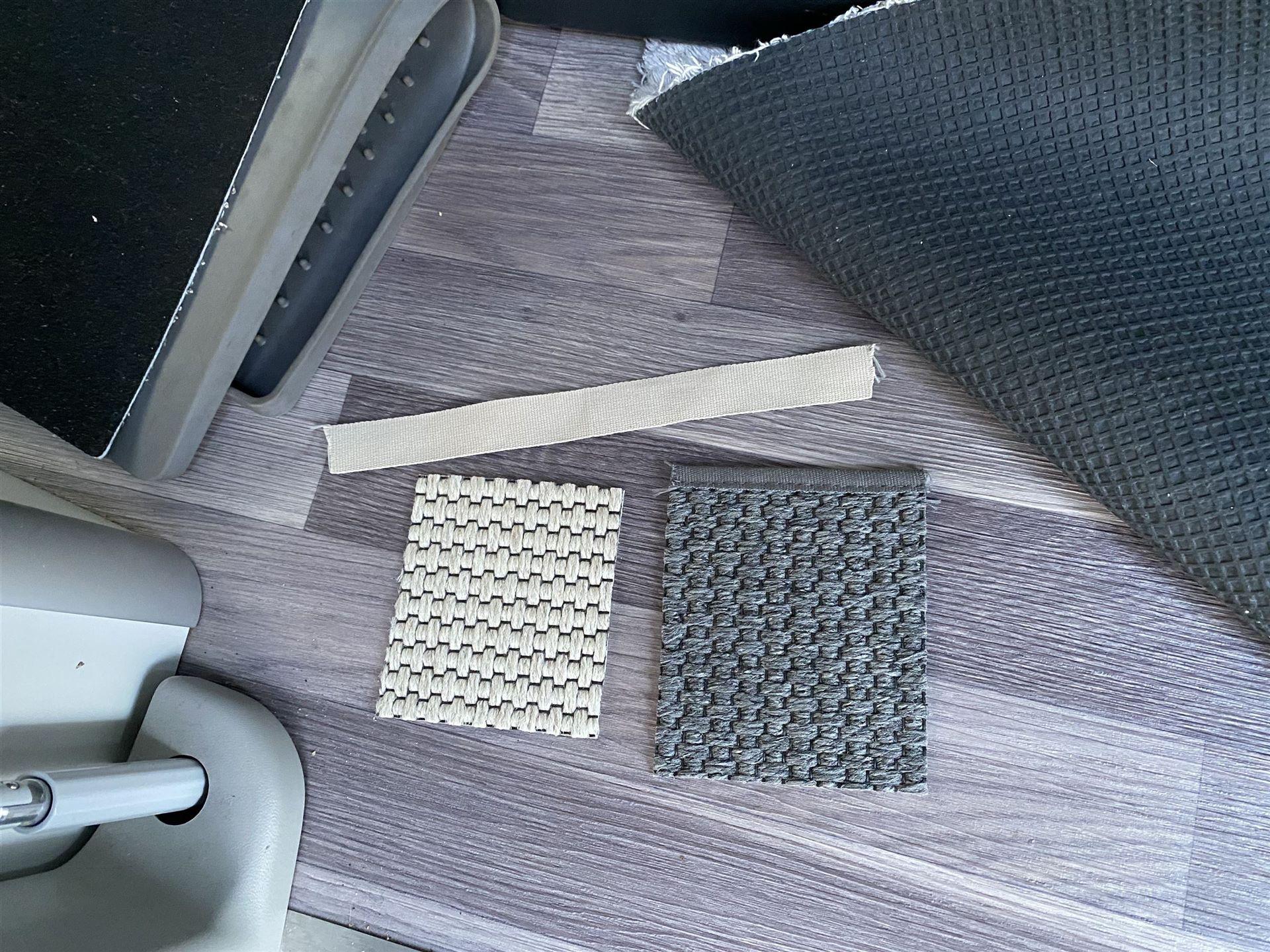 Nun wollen auch wir uns endlich fürs autormobil einen solchen Bodenbelag zulegen. Die Firma Jaensch stellt zehn Farben zur Auswahl (hier einzusehen). Unsere Favoriten – ein »schmutziges« Beige (212001) sowie ein Anthrazit (212009) – standen schnell fest. Zur Sicherheit haben wir uns aber noch Muster schicken lassen. Diese lagen schon am nächsten Tag im Briefkasten.