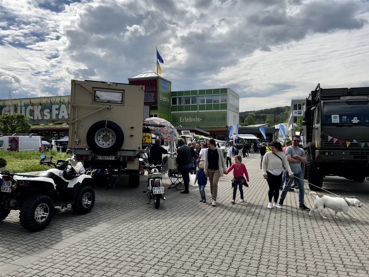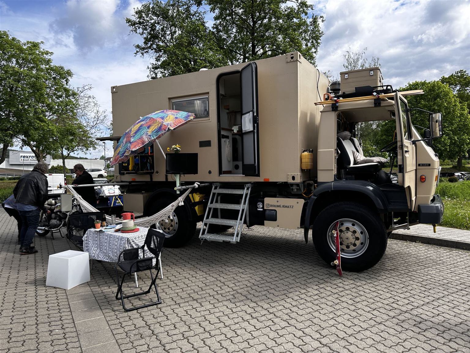 Den Reiselasta von Gabi und Andreas konnte man einfach nicht übersehen: Im Selbstausbau hat das sympathische Paar aus einem Bundeswehr-LKW ein fantastisches Expeditionsmobil gezimmert. Wer mehr erfahren wollte, durfte einsteigen und staunen! Oliver und ich waren echt platt ob der beeindruckenden Größe und Kreativität.