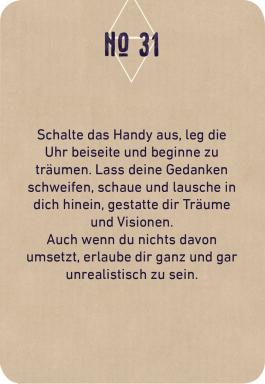Die beiden oben genannten Sets mit Texten von Ingrid Ickler passen perfekt in jede Hosentasche und werden so zum idealen Begleiter: Einfach unterwegs eine Karte ziehen und ganz bewusst kleine Abenteuer erleben, die den Tag besonders machen.