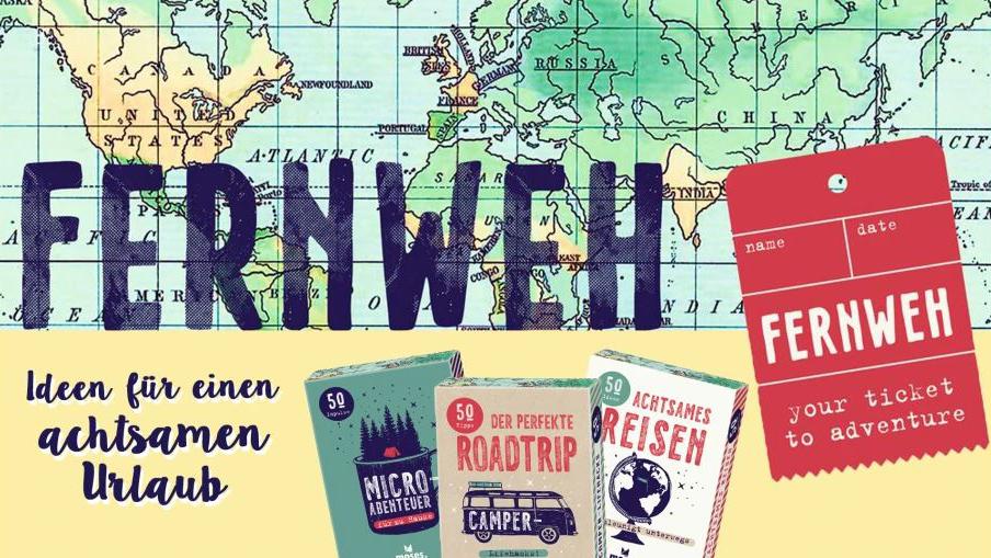 »Slow Travelling statt Must See«. Ganz in diesem Zeichen stehen die drei neuen Kartensets aus der Reihe Fernweh im moses. Verlag: Auf je 50 Karten finden sich Ideen und Anstöße für mehr Achtsamkeit und Entschleunigung im Urlaub und zu Hause sowie den perfekten Roadtrip.
