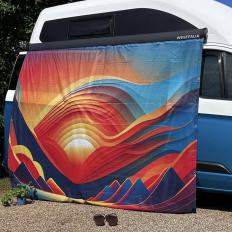 Damals wurde die Idee geboren, das VANDALA rechts und links am Kassettenkasten mit Planenspannern zu sichern. Da die Kederschiene unserer THULE Omnistor 4900 an den Seiten etwas weiter ist, hatte der Wind leichtes Spiel und konnte das VANDALA entweder rausreißen oder seitlich – einem Vorhang gleich – verschieben. Dank den beiden Gummibändern bleibt das VANDALA nun dort, wo es hingehört: an der Markise.