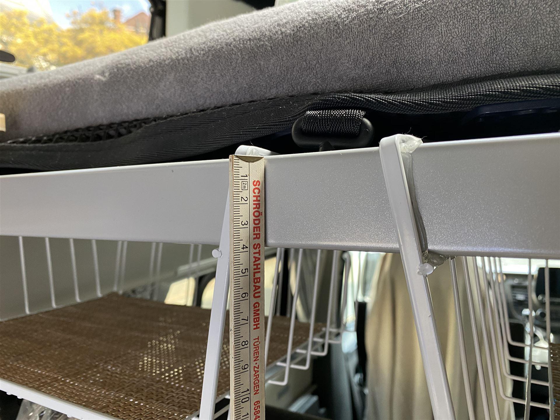 Wichtig ist, dass der Halter ungefähr 42 bis 43 mm misst, sodass sich die Körbe überhaupt ins Bettgestell einschieben lassen.
