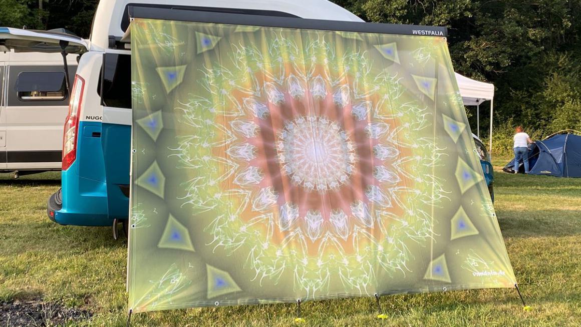 Ich möchte euch unser neues VANDALAS zeigen. VANDALAS – das sind Mandalas für Vans – machen die Welt ein bisschen bunter, trotzen Sonne, Wind und Wetter und sind ein prima Sichtschutz, wenn’s mal wieder etwas privater zugehen darf. Ein prima Schattenspender sind sie obendrein.