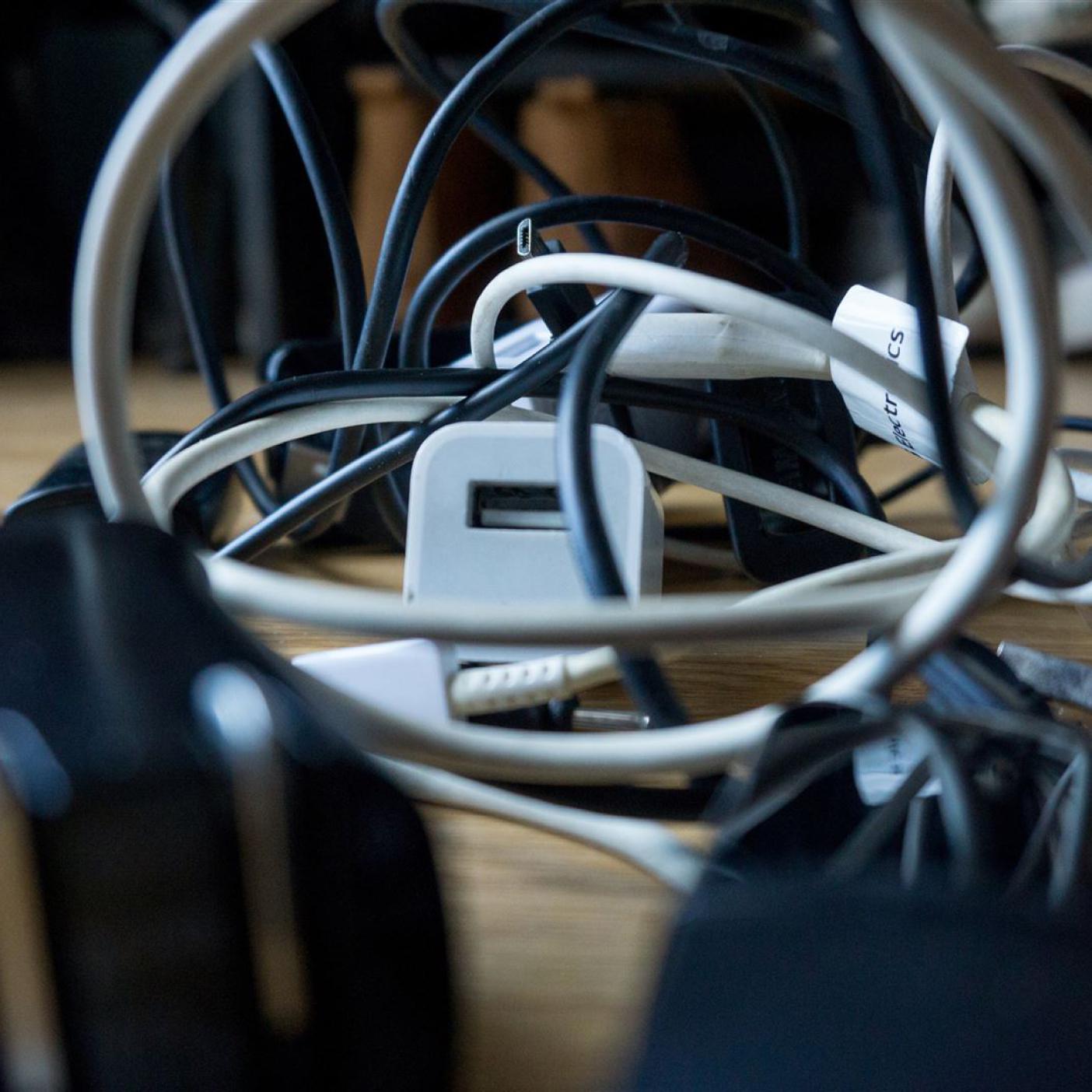 Den allseits bekannten Kabelsalat verhinderst du am besten, wenn du das Innere einer Küchentuch- oder Klopapierrolle an einem Ende einschneidest, dort den Stecker einhakst und dann das Kabel drumherum wickelst.