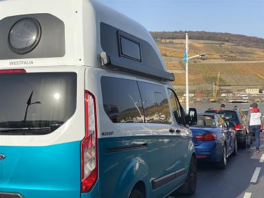 Hoch über dem Rhein ragt das Niederwalddenkmal in den Himmel. Man erreicht es am schönsten über den Reben schwebend: in zehn Minuten mit der Seilbahn von Rüdesheim aus. In kleinen Kabinen, die jeweils bis zu vier Personen aufnehmen können, lässt sich auf einer Länge von 1440 Metern entspannt schaukelnd das sich bietende Panorama genießen.