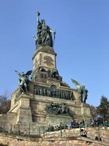 Am Niederwalddenkmal angelangt, kommt man sich plötzlich winzig klein vor. 38 Meter misst das monumentale Gedenkbauwerk, das an die Einigung Deutschlands 1871 erinnern soll. Allein zwölfeinhalb Meter nimmt die auf dem oberen Sockel thronende Germania ein. Damit belegt die »Lady Liberty vom Niederwald« den 5. Platz der größten deutschen Statuen.