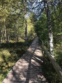 Der Moorlehrpfad führt schließlich zu einem Aussichtsturm im nördlichen Bereich, der einen wunderbaren Ausblick über die Weiten des Hochmoores bietet. Erkennbar sind von hier aus auch die Flächen, auf denen früher Torf abgebaut wurde. Wer unterwegs eine Ruhepause einlegen möchte, lässt sich auf den gemütlichen Holzbänken mit Tischen auf dem Rastplatz mitten im Grünen nieder. Hier schmeckt der mitgebrachte Proviant noch einmal doppelt so gut!