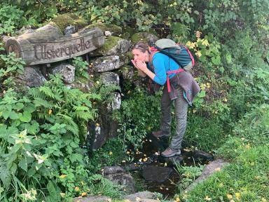 Im September sind die Temperaturen mild und dennoch nicht zu kühl, das Laub beginnt langsam, sein leuchtendes Grün einzutauschen und wird bald kräftige Herbstfarben tragen. Doch noch ist es nicht so weit. Nach einer gewissen Zeit stellt sich das Bedürfnis nach einer kleinen Pause ein. Ein Ort hierfür könnte die Ulsterquelle sein – sie hält eine köstliche Erfrischung mitten in der Natur bereit und stillt mit ihrem frischen Quellwasser den Durst. Rund um die Quelle, die sich im weiteren Verlauf zu einen kräftigen Fluss entwickelt, befindet sich ein verträumter Rastort mitten im Grünen. Bänke und Tische laden dazu ein, sich kurz zu erholen, innezuhalten und die Ruhe zu genießen.