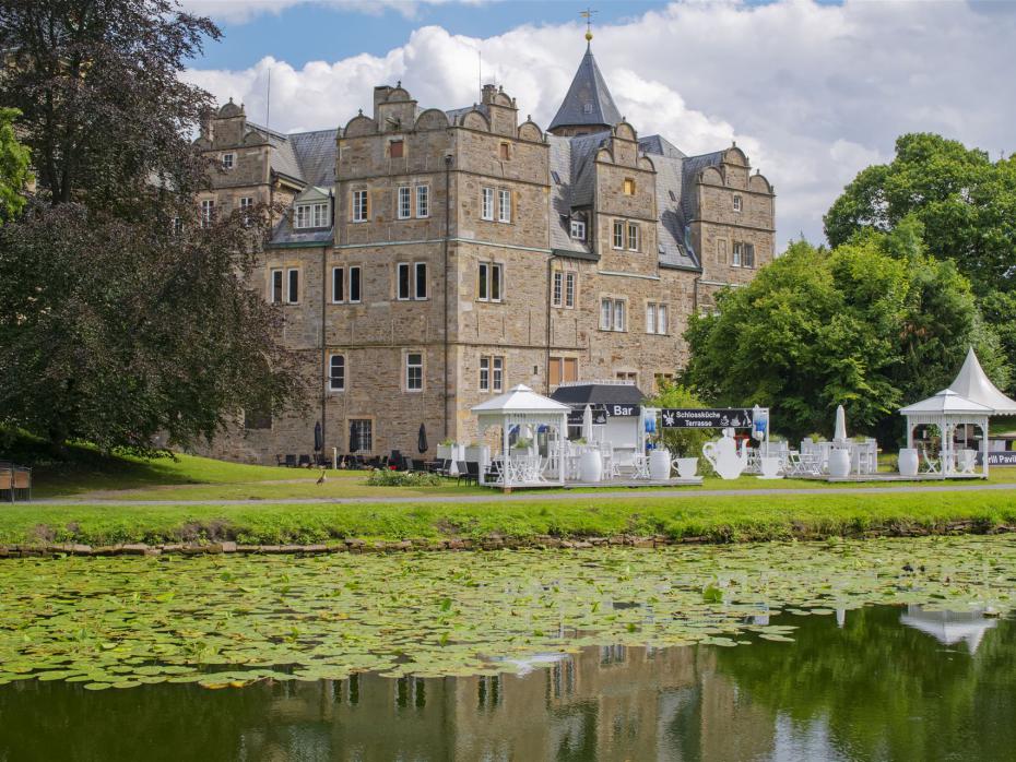 Wer das imposante Schlossportal durchschreitet, gelangt geradewegs in andere Sphären: Rund zweihundert Aussteller, Aufführungen der Fürstlichen Hofreitschule sowie unterhaltsame Musikdarbietungen sorgen in der weitläufigen Parkanlage für echte Weser-Romantik. Festlich geschmückt, lädt das historische Gemäuer mit seinem weitläufigen Park zum Flanieren und Verweilen ein.